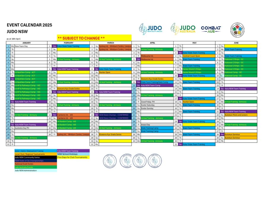 2025 Judo NSW Calendar 160425