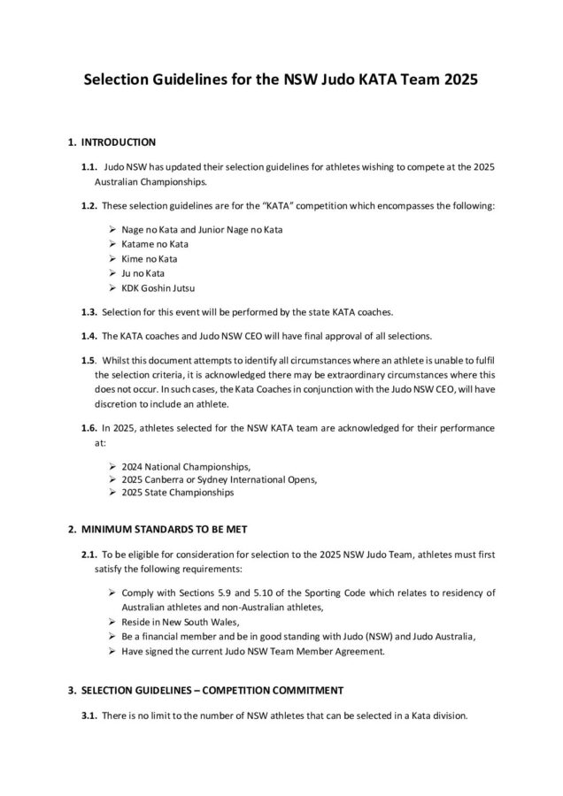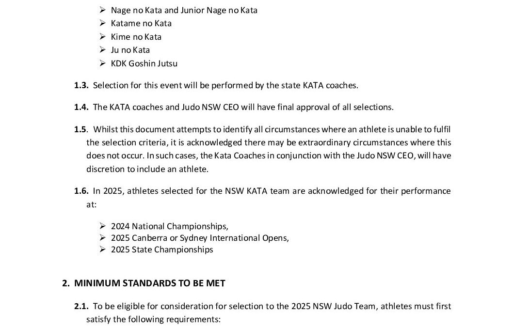 2.3.6 Selection Guidelines for the NSW KATA Team 2025