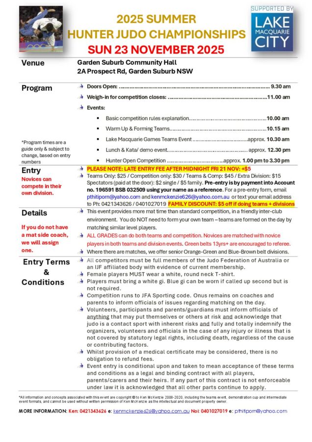 251123 Sun 23 NOV 2025 Hunter Judo Championship Notice